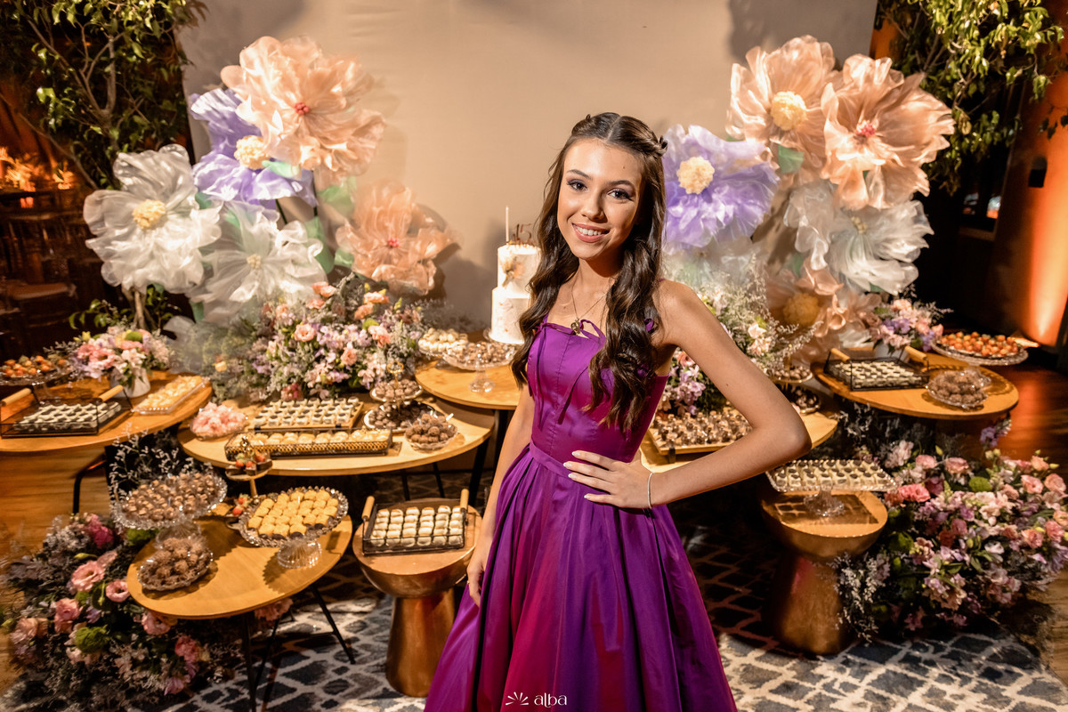 Decoração da festa de 15 anos da Valentina na Villa Bosco em Lajeado registrada pelo Alba Estúdio